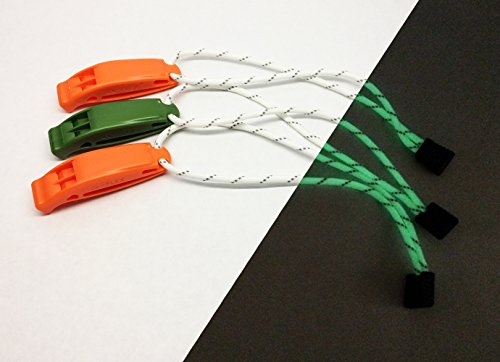 Blackett Emergency Safety Whistle 3-Pack, With Glow in the Dark Wrist Lanyards