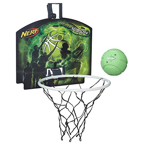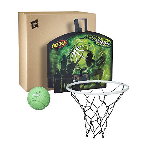 -. Binding : Toy -. Brand : Nerf -. EAN : 5156648272776 -. Feature : High quality toys for children all ages / Made using safe materials / Tested for quality and durability / Complete Nero basketball system is built for indoor or outdoor action / Comes with mini basketball that lights up / Rim glows when you shoot / Set up in seconds by hanging the backboard over a door or wall / Set includes basketball, backboard, hoop, net, mounting hardware and instructions -. IsAdultProduct : 0 -. Label : Hasbro -. Manufacturer : Hasbro -. Model : A9276 -. MPN : A9276 -. PackageQuantity : 1 -. PartNumber : A9276 -. ProductGroup : Toy -. ProductTypeName : TOYS_AND_GAMES -. Publisher : Hasbro -. Studio : Hasbro -. Title : Nerf Fire Vision Ignite Nerfoop Set -. UPC : 630509340392 -. Warranty : No Warranty