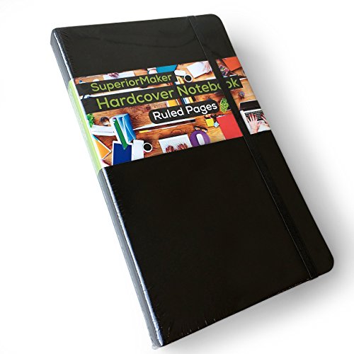 AMAZING FEATURES - With a sturdy hardcover finished in black high grade PU Leather the SuperiorMaker Ruled Notebook is stylish, durable and comes packed with features! It has an elastic cloth band to hold the notebook closed when not in use, a black ribbon page marker and an expandable back cover pocket perfect for holding business cards, notes, receipts and anything else you might want to tuck away. The special thread-bound binding of the notebook also allows it to lie flat when open.