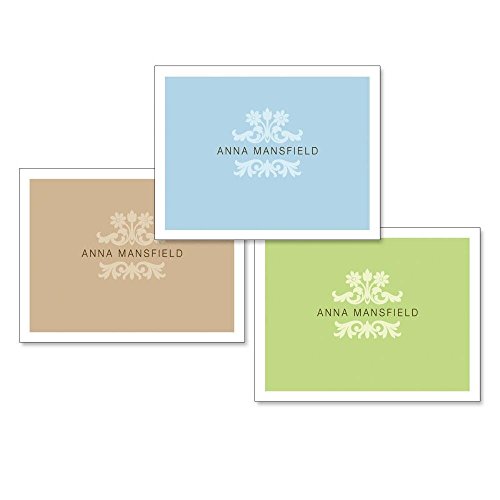 -. Feature : Personalized Note Cards - Set of 24 , 8 of each color with white envelopes / Our blank-inside cards are 4 1/4" x 5 1/2", quality stock, and come in a gift package. / Blank-inside set includes sky blue, sage green, and light cocoa, plus a clear acrylic sleeve for gift-giving. / Specify name, up to 24 characters and spaces / Please Note: We are unable to P.R.Int foreign characters in personalization.