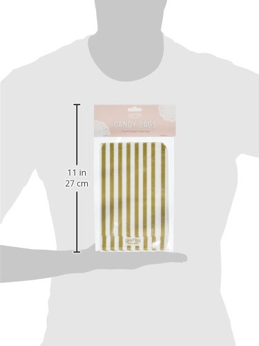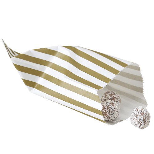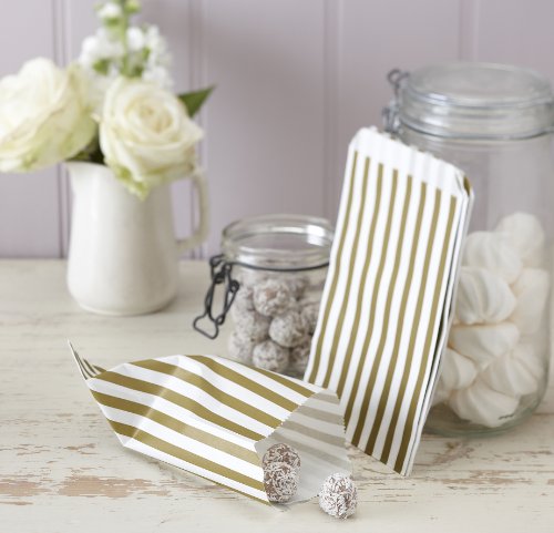 Ginger Ray Wedding/Party Treat Striped Candy Bags (25 Pack), Gold/Ivory