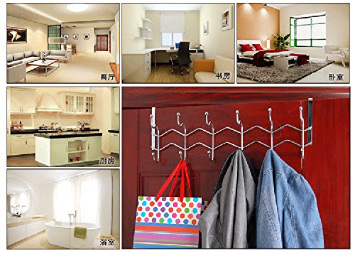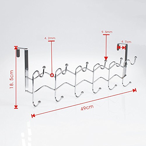 -. Feature : Elegant and creative Double-Layer Hooks design,12 hooks,more space saving. / Perfect solution for hanging coats,towels,trousers, or any other bathrobes and clothing items. / Over the door type, easy to install and much space-saving. / Material type: iron art. / Size:49*18.5 cm; Buckle width: 4.7 cm.