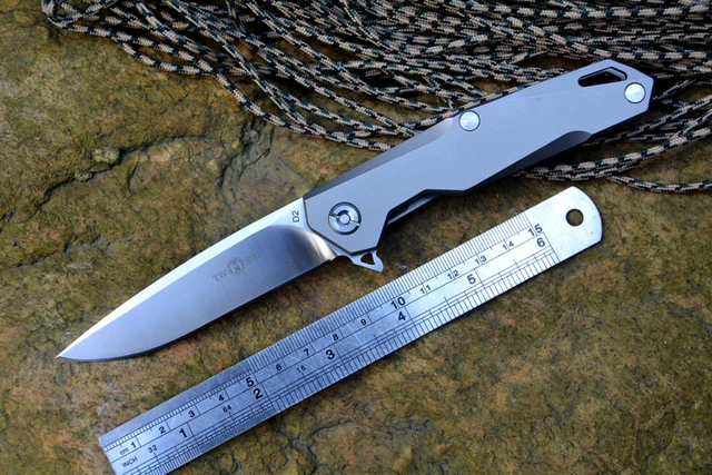 | [해외] TwoSun TS-21 플리퍼 접는 칼 D2 블레이드 티타늄 핸들 3.43 "새틴 블레이드 야외 사냥 포켓 나이프 EDC 도구 무료 선박 |