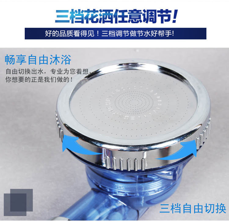 Three gears turbo nozzle has a gear shifting gear button, click on a water, then the first second gear water effect is better, then three file supercharging effect is more apparent, water more at ease.