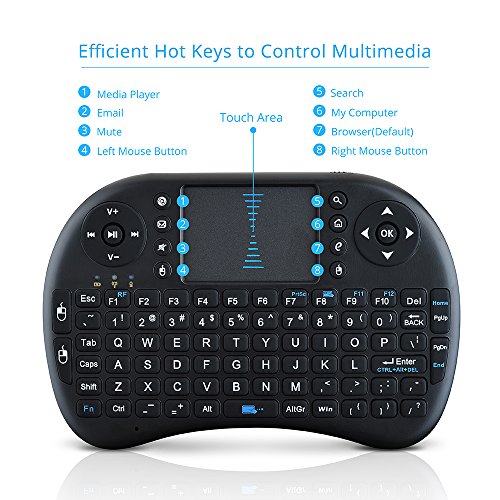 ERGONOMIC DESIGN. Palm-size, streamline design, QWERTY standard keyboard with 92 keys, combined with touch-pad mouse function, this wireless keyboard is the perfect companion of home entertainment especially for HTPC, just feel free to remote control your device when you sit on your couch or bed.