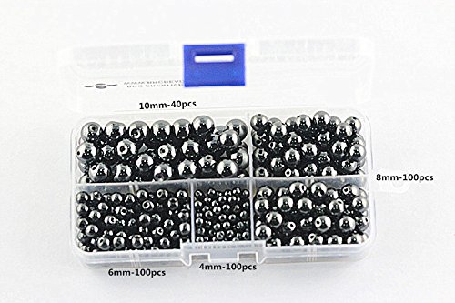 - Material: Hematite Gemstones Beads with Plastic Jewelry Box, Total 340pcs/box(4mm-100pcs;6mm-100pcs;8mm-100pcs;10mm-40pcs)