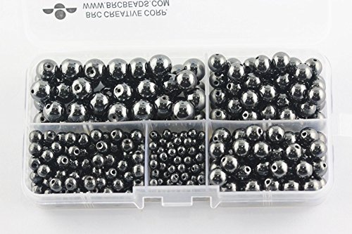 BRCbeads Hematite Gemstone Loose Beads Round Value Box Set 340pcs Per Box for Jewelry Making (Plastic Container is Included)-4,6,8,10mm