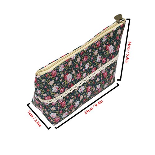 LJY 4 Pieces Assorted Large Capacity Flower Floral Pen Holder Stationery Pencil Pouch Travelling Multi-functional Cosmetic Bags