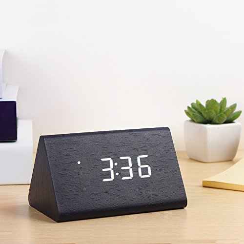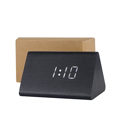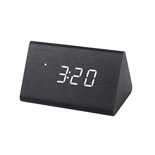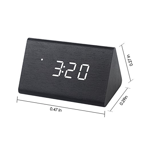 -. Title : 目覚まし時計 LED 置き時計 デジタル 多機能 温度湿度表示 音声感知 USB給電 大音量 アラーム カレンダー付 木目調(黒・白字)