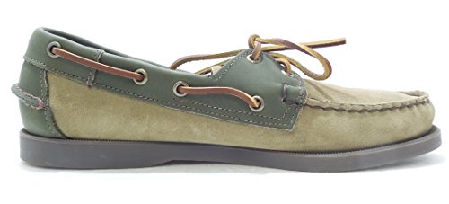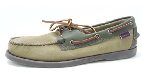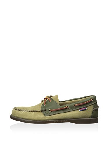Binding : Apparel Product Description The Sebago Spinnaker Mens Boat Shoes are composed of a durable leather upper. Moccassin constructions allows for a secure look and feel. Metal eyelets and rawhide laces surround the shoes, which allow the user to loosen or tighten for a customized fit and feel. Leather cushioned insole plus leather sockliner combine to give you a comfortable feel. Non-marking, slip-resistant Dockside outsole provides traction on all surfaces. Green / Brown 0