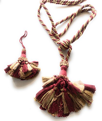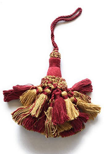 These Beautiful Soft & Tie cords full Key Tassels are made with Lustrous 50% Viscose 50% Cotton *Albany 4 1/2" long with a 3" Loop Cord , *Tassel Height 7" (17.78 cm) , Cord Spread 34" (86.36 cm) *Origin Turkey * Color Treasure Scarlet , Gold ,and Mixed