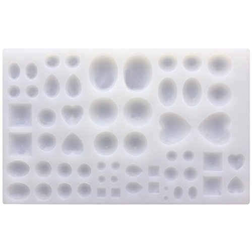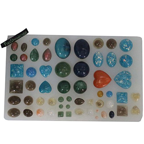 Funshowcase Cabochon Gem Jewelry Silicone Mold Oval Teardrop Square Heart Round Shapes, for Polymer Clay, Crafting, Resin Epoxy, Pendant Earrings Making, Large
