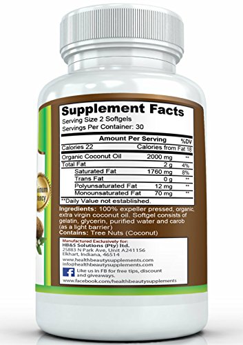 -. Binding : Health and Beauty -. Brand : HB&S Solutions -. EAN : 0636391766715 -. Feature : ★WHY HB&S SOLUTIONS★ Our 100% Natural Extra Virgin Coconut Oil Soft Gels Smashes The Competition. Get 2000mg Of The Purest Coconut Oil Daily! Also Works Amazingly Well For Hairloss For Men And Women. This Is Nature's Solution To Anything Hair Skin And Nails. / ★EXTRA STRENGTH★ No 1000mg, 3000mg, 4000mg or 5000mg Supplement Can Compete With Us Due To The Purity Of Our Product! We Don't Cut Corners And You Can Be Assured That You Will Get The Best Coconut Oil Soft Gels On The Market Today! Scientifically Engineered Formula Set Us Apart From All Our Competition / ★THIRD PARTY TESTED★Our Vision Is Simply, The Best Purity And Unsurpassed Quality For The Best Results! Our Coconut Formula Beats Any Coconut Oil Liquid Drops, Coconut Oil Cream, Coconut Oil Capsules, Coconut Oil Pills & Tablets / ★BEST HAIR SKIN AND NAIL COMPLEX★ Also Fights Hair Loss For Men And Women Naturally. Bad Skin & Nails Will Be A Thing Of The Past! Did You Also Know That Coconut Oil Can Even Help With Natural Weight Loss. / ★GREAT RESULTS★ Simply The Best Fractionated Coconut Oil EVER! Our Organic Vegan Friendly Capsules Is The Only Way! Make Sure You Choose The Best, Choose The Household Name (HB&S Solutions). Why Buy From Any Other Small Company Making Their Products In China When You Can Have The Best From An Established Brand In The USA, Choose The United States, Choose HB&S Solutions -. IsAdultProduct : 0 -. Label : HB&S Solutions -. LegalDisclaimer : Results vary from person to person. These statements have not been evaluated by the Food and Drug Administration. This product is not intended to diagnose, treat, cure or prevent any disease. The content is not intended in any way as a substitute for professional medical advice, diagnosis or treatment. Always consult your physician other qualified health care provider before making any dietary changes or starting any nutrition, weight control or exercise program and never disregard professional medical advice. HB&S Solutions is a registered brand on amazon the only company to sell HB&S Solutions products on Amazon. -. Manufacturer : HB&S Solutions -. ProductGroup : Health and Beauty -. ProductTypeName : HEALTH_PERSONAL_CARE -. Publisher : HB&S Solutions -. Studio : HB&S Solutions -. Title : ★***MEGA POTENCY***★Best Premium 100% Natural Extra Virgin Coconut Oil Soft Gels●Our Miracle Pills Will Help With Hair, Skin And Nail Growth, Natural Weight Loss And Much More! -. UPC : 636391766715