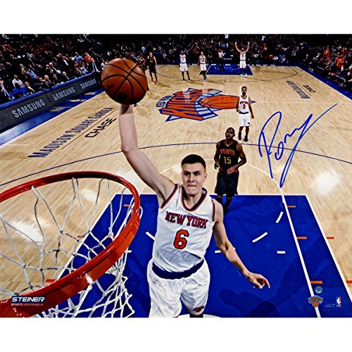 Kristaps Porzingis Signed Dunking vs. Hawks 16x20 Metallic Photo (Signed in Blue)