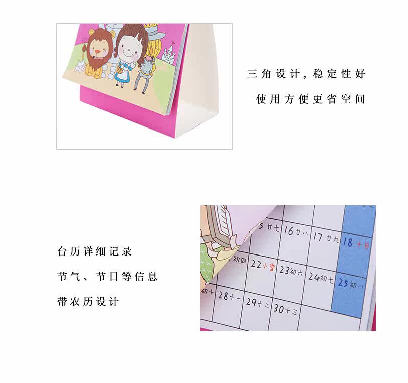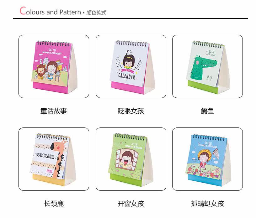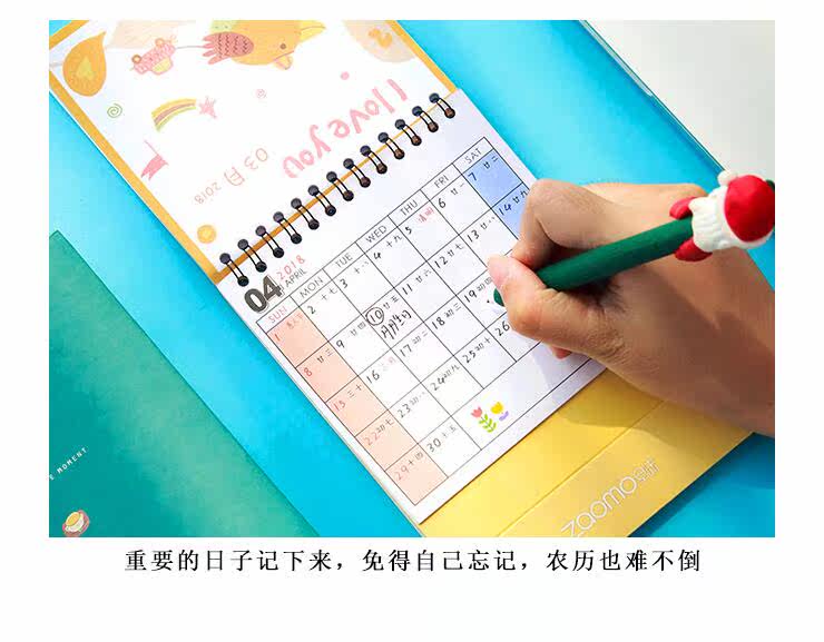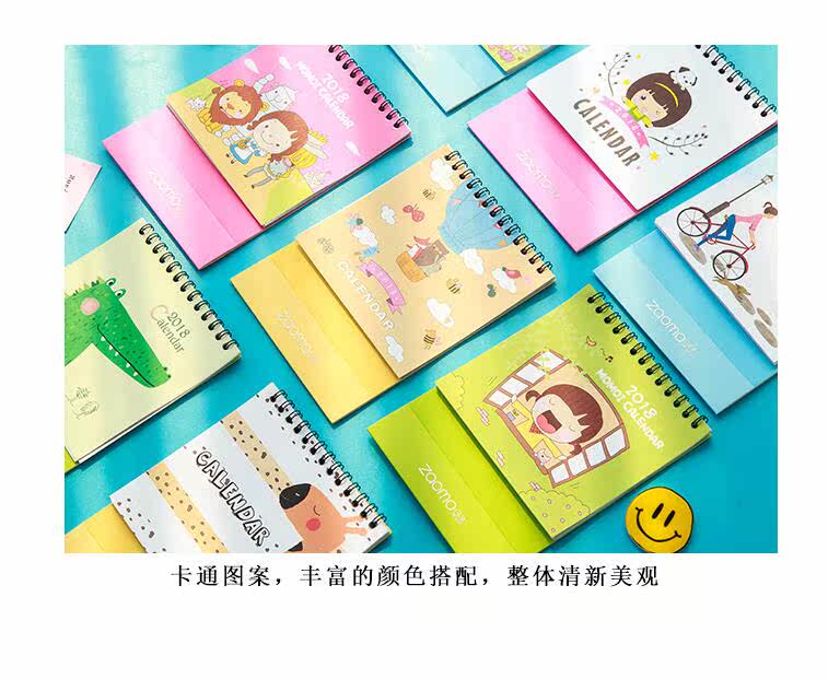 日历记事本摆件台历2018创意卡通办公桌面学生计划本 线圈日历本