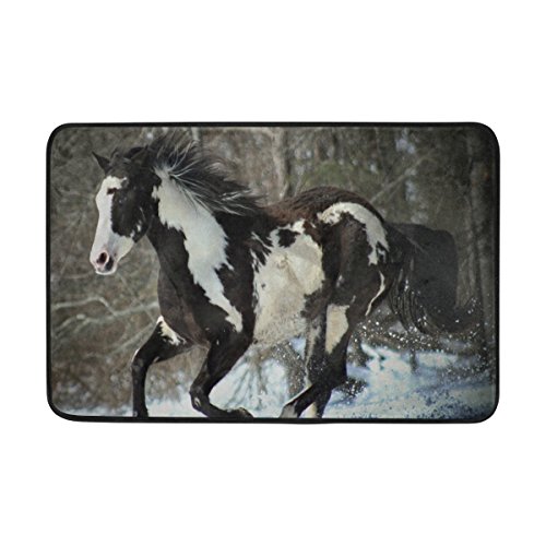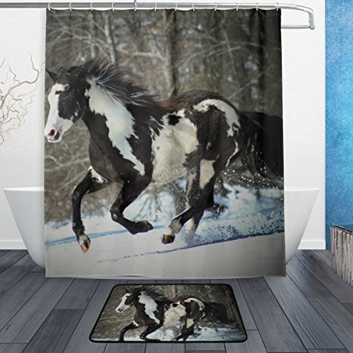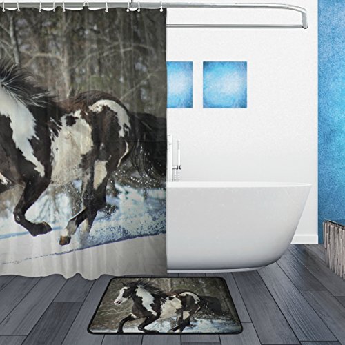 BAIHUISHOP Horse Winter Snow 3-Piece Bathroom Set, Machine Washable for Everyday Use,Includes 60x72 Inch Waterproof Shower Curtain, 12 Shower Hooks and 1 Non-slip Bathroom Rug Carpet - Set of 3