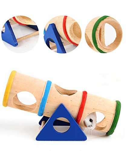 Studio : loveone Publisher : loveone Binding : Misc. Product Description Product Description ? Net weight: 0.4lb ? Shipping weight: 0.5lb ? ?Size: 6.6 x 2.75 x 3.75 in ? Entrance holes are 1.3" in diameter. ? Increases activity level and giving him a fun spot to play ? Provides small animals with a hideout and chewing instincts. ? Raise the animal's instinct Package includes: ? 1 X Wood Seesaw Tunnel Toy 0