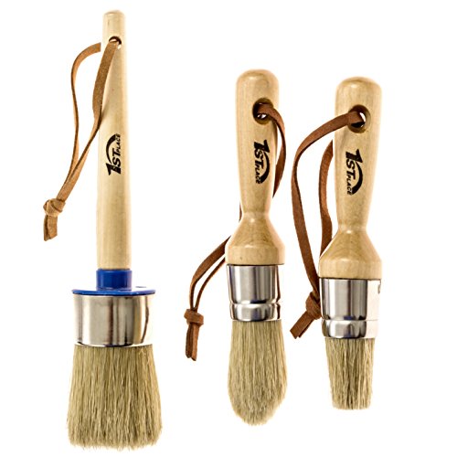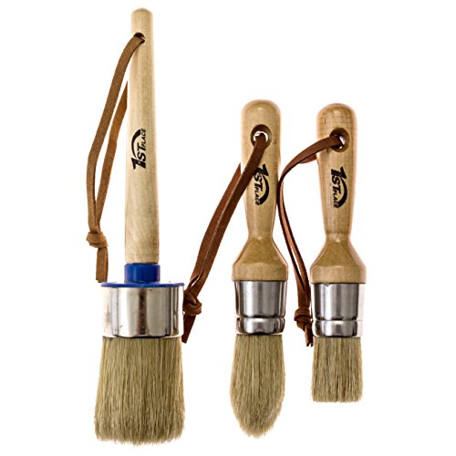 1st Place Professional Chalk Paint & Wax Pure Bristle Brush Set - Hand Made (3 Brushes)