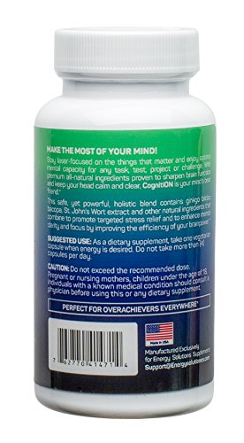COGNITION ENHANCED: Energy Solutions' Cognition supplement comes in a bottle of 60 capsules, a 1 month supply -perfect for overachievers to take anywhere, anytime!