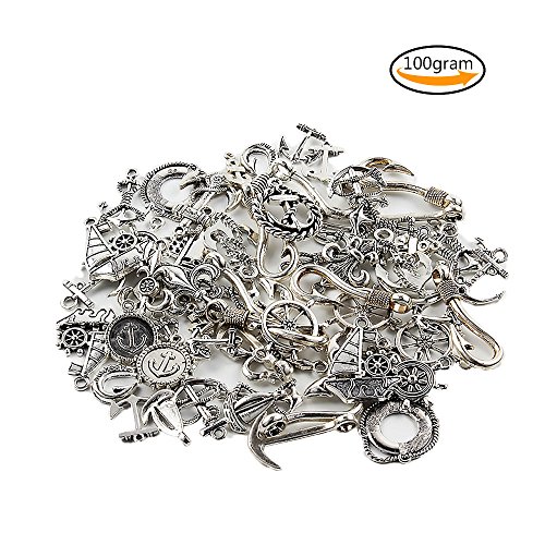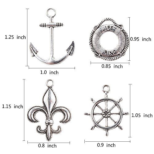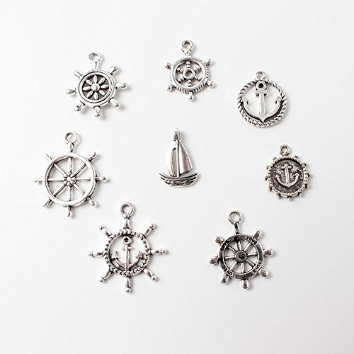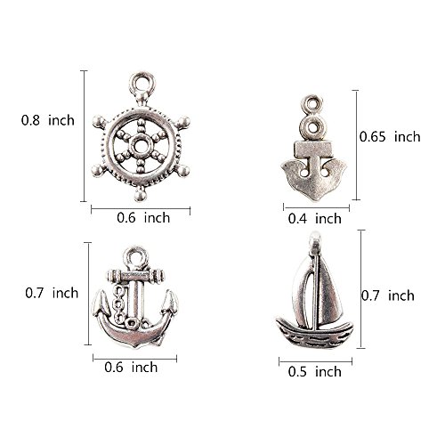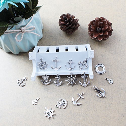 Teenitor 100 Gram Mixed Shape Rudder Anchor Ship Sailboat Theme Assorted Antique Charms Pendant for Crafting, Jewelry Making Accessory - Silver