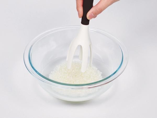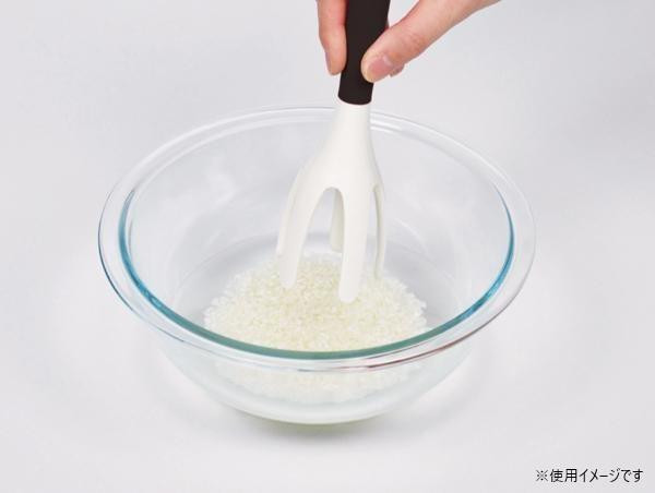 指先のような形状でやさしく米とぎ。米をきずつけずおいしく炊けます。