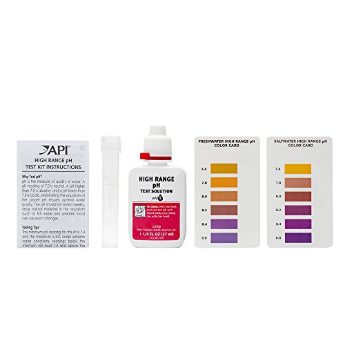 Contains one (1) API HIGH RANGE PH TEST KIT 160-Test Freshwater and Saltwater Aquarium Water Test Kit, including 1 bottle of testing solution, 1 color card and 1 glass test tube with cap