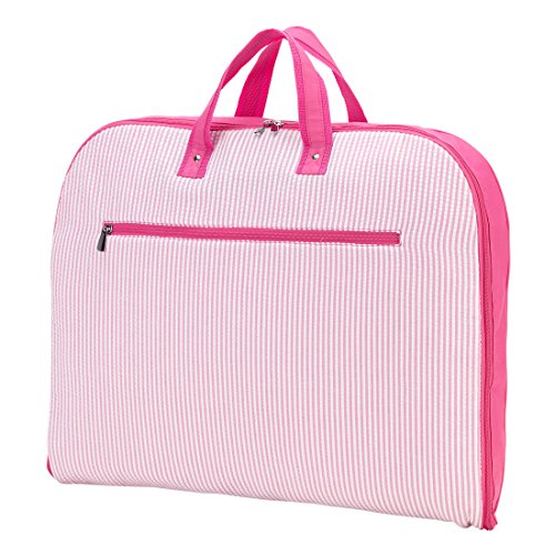 -. Brand : Wholesale Boutique -. Color : Pink Butterfly - 196 -. Department : womens -. Feature : Folded: 24" L x 2.5" W x 19" H / Hanging: 38" H x 24" W / Polyester Inside Lining / Zipper Closure Clothing Compartment / Multiple Inside Zipper Pockets -. Model : GM40 -. PackageQuantity : 1 -. ProductGroup : Apparel -. ProductTypeName : LUGGAGE -. Size : Large -. Title : Pink Seersucker Travel Garment Bag with Extended Hanger Can be Personalized