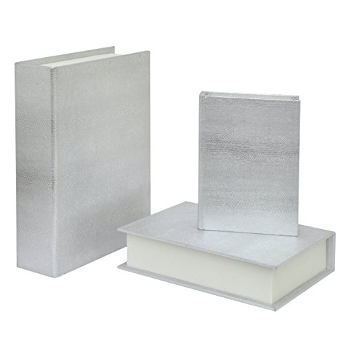 Three Hands Corporation 34383 Wood Book Box with Snakeskin Finish, Set Of Three, Silver