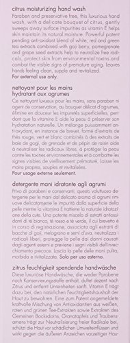 ReleaseDate : 2016-02-12 Studio : Mainspring America, Inc. DBA Direct Cosmetics Publisher : Mainspring America, Inc. DBA Direct Cosmetics Binding : Health and Beauty Product Description June Jacobs Citrus Moisturizing Hand Wash sweeps away debris as it nourishes and perfumes your skin. Rich with purifying botanicals and deliciously aromatic, zesty citrus, this lathering formula rids skin of impurities and revitalizes the senses. Botanical extracts of green, red and white tea protect skin from environmental damage while goji berry and pomegranate extracts promote elasticity. 0