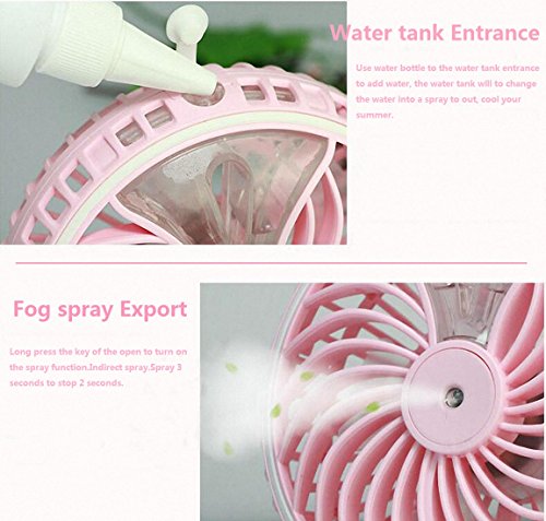 ◆ Mobile rechargeable protable-Desktop mini humidifying fan .This product in the tradational desktop mini fan added new elements - mini fan + humidifying spray.It improves the cooling effect to make you feel a cool summer.