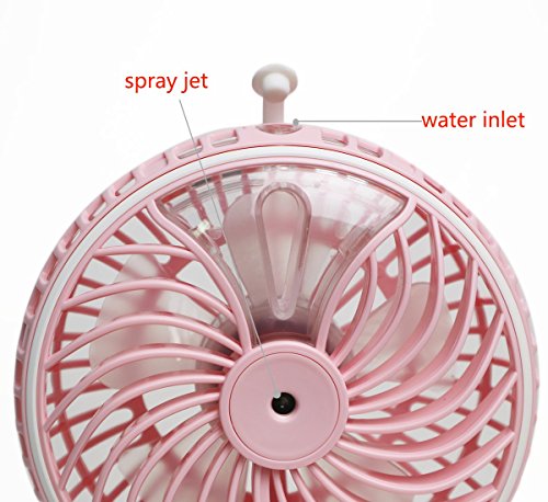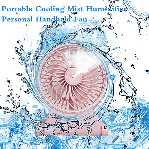 USB Mini Fan Rechargeable Built-in High Capacity Lithium Battery 2.8W/1200mAh Blowing Humidifying Anytime and Anywhere Hydrating USB Portable Cooling Humidifier Mini Spray Mist Water Fan (Pink)