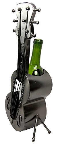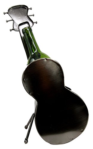 Atlantic Collectibles Acoustic Guitar On Stand Hand Made Metal Wine Bottle Holder Caddy Decor Figurine 14.5"H