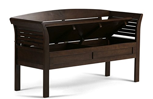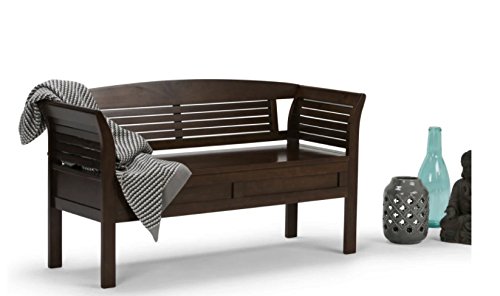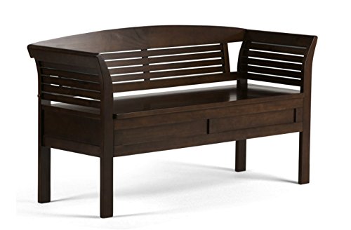 -. Feature : Color: Rustic Brown / Overall dimensions: 49L x 18W x 27.4H in.; Seat dimensions: 49W x 18D x 16H in. / Material: Solid Wood, Pine Wood, Wood / 2 storage compartments inside / Contemporary style with flared sides