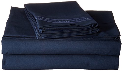 Jessica Sanders Premier 1800 Series 4pc Bed Sheet Set - Full (Double), Navy Blue, - Jessica Sanders Embroidery