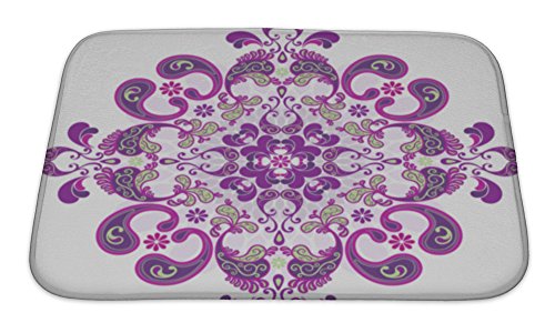 Gear New No Slip Microfiber Memory Foam Floral Vintage Round Frame Bath Rug Mat, 24" X 17"