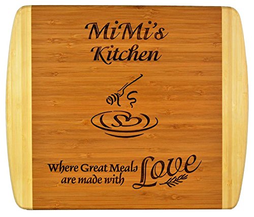 - GIFT FOR MiMi / GRANDMA / MOM / MOTHER– A Specially Designed Mimi 2-Tone Bamboo Cutting Board with Custom Engraving that reads “Mimi’s Kitchen Where Great Meals are made with Love”. With a Special Heart Shaped Dish Design in the Middle to express your Love for MiMi! A Special Heart Felt Gift for Grammy, GiGi, Nana, Grammy, Nonna, Momma or any special Grandma loved one