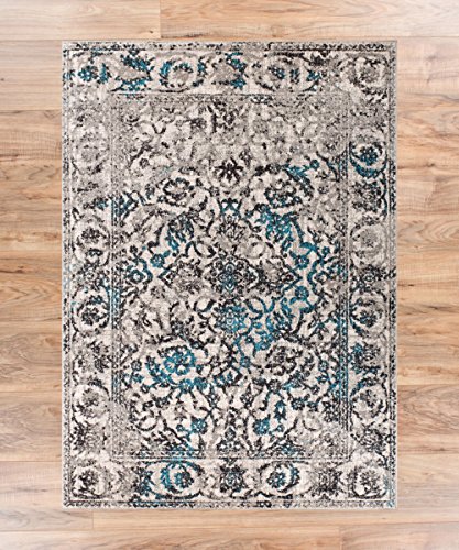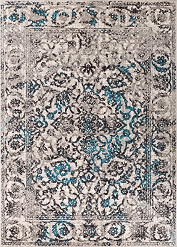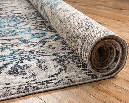 Yorkshire Blue is an Old World style made fresh and new with modern design elements. A classic Oriental Sarouk design is updated with a contemporary palette of grey and ivory with stunning pops of blue. The pattern is heavily distressed to give the quality of a timeless antique. A plush 0.5" pile of air twist frieze polypropylene gives an exceptional textured look. The yarn is soft, stain resistant, and doesn't shed or fade over time. A 100% jute backing is safe for wood floors and all four sides of the rug are serged for improved durability.Feature