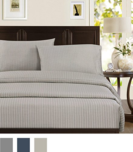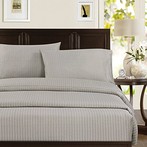 Echelon Home Pinstripe Cotton Sateen Sheet Set, California King, Taupe