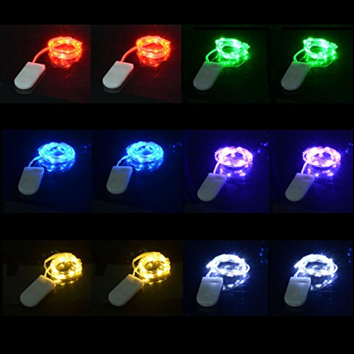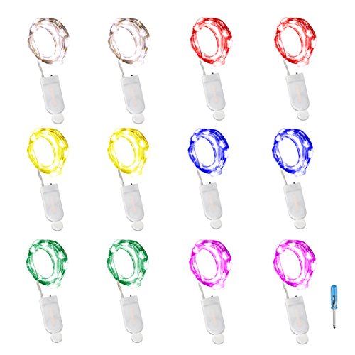 LXS 12 PCS Starry Fairy Lights 6.5ft 20 Leds Silver Wire Battery Powered Fairy Rope Light for Halloween Party Christmas Wedding Parties Decoration (6 Colors)