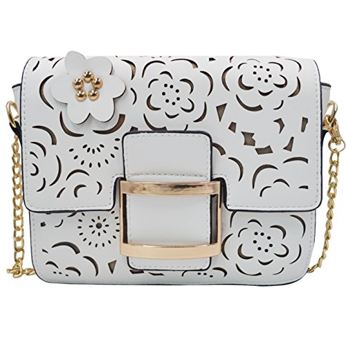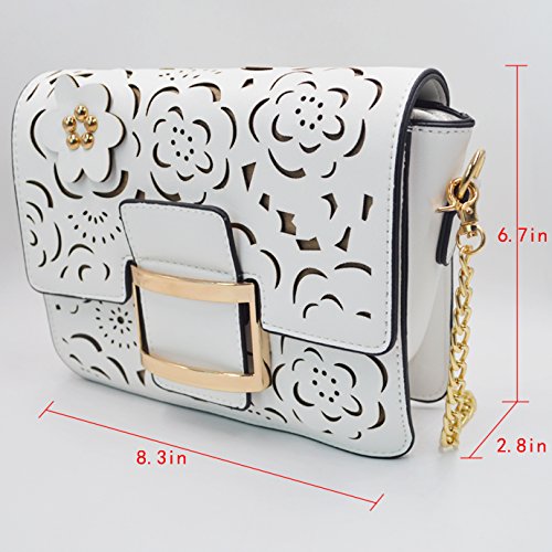 Felice Women Hollow Out Handbag Flower Beaded Clutch Chain Shoulder Bag