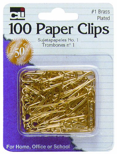 Charles Leonard Clips - Paper - #1 Gem, Brass Plated - 100/Card, 80733