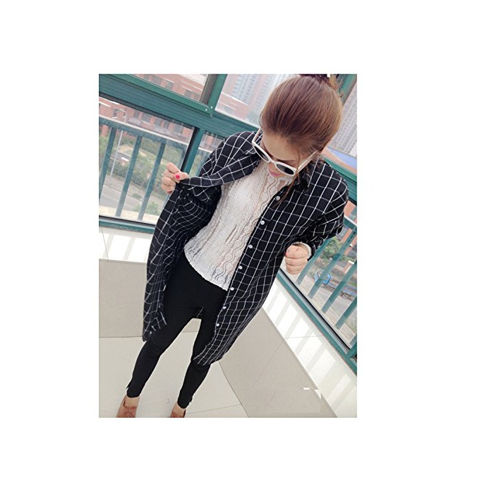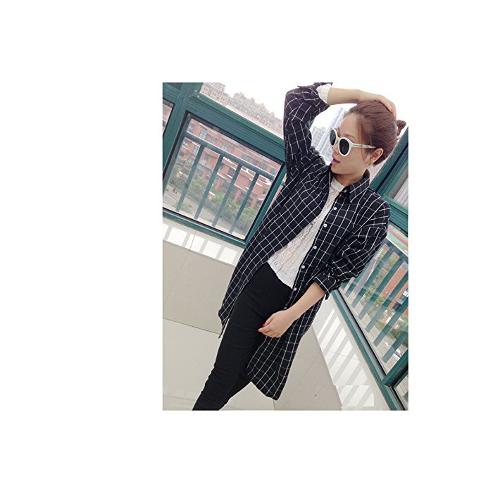 원본상품명: アッシュ&ワイ (h&y) 格子 柄 ロング シャツ ワンピス レディス ウィンドウペン チェック 柄 長袖 シンプル 大人 ゆったり 大きめ カジュアル 2015 秋 冬 (L, 白×)