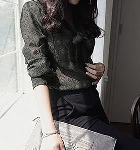 • シックなカラーに胸元の手結びリボンのボウタイが大人かわいいいブラウスです。