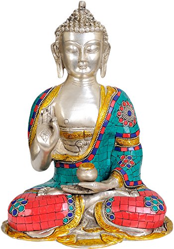 Shakyamuni Buddha Preaching His Dharma - Brass Statue with Inlay