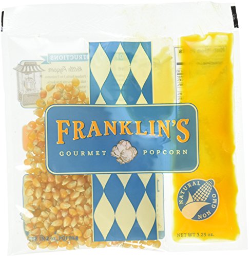 Franklin's Gourmet Movie Theater Popcorn. Organic Popping Corn, 100% Coconut Oil, & Seasoning Salt. Pre-Measured Portion Packs (Pack of 10).