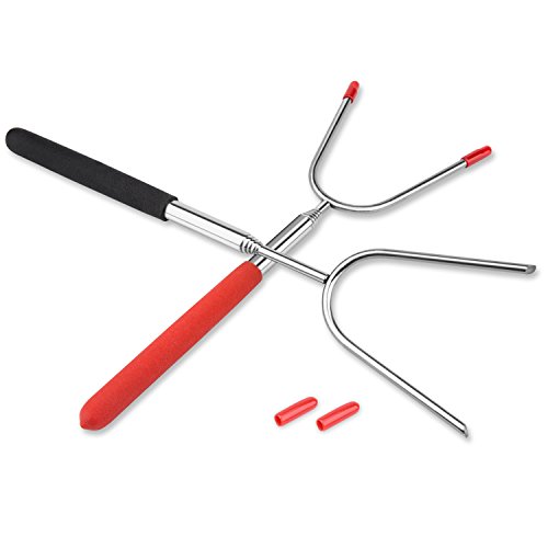 Features: - FDA Approved Easy to Clean Stainless Steel guaranteed to be of the highest standards for you your family. - 34" Long extendable forks keep you and children a safe distance from any patio fire pit, backyard fire pit, bonfire pit, or campfire | Protective rubber tips on prongs make them perfect for storage and handling around children making them a must have for BBQ. - Telescoping stick and protective tip make it easy for camping trips or storing at home. - Comfortable PVC handle is moistureproof, mothproof, heat-resistant. - Versatile, these skewers can be used to make perfect smores, sausages, wiener's, hotdogs and even vegetables and fruits. - Solid and completely reliable, they secure your food in place for the best roasting experience. Weight: 6 x 40g = 240g Package include: 6 x Roasting Sticks Any probelm, pls contact us, we will provide refund or replacement without return required. 0