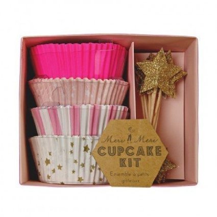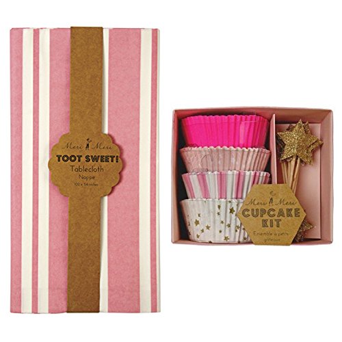 Meri Meri Toot Sweet Pink Stripe Party Pack (Pink Stripe Tablecloth & Cupcake Kit)
