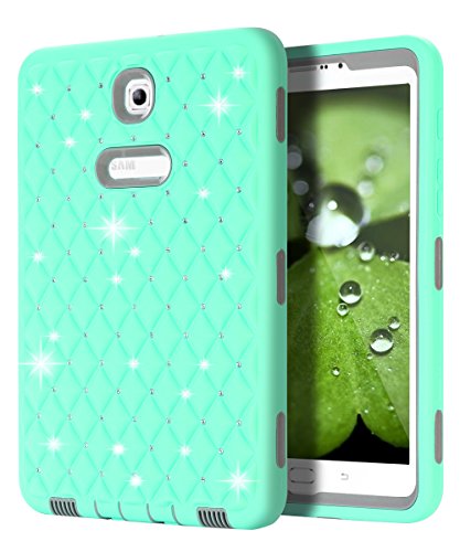 Galaxy Tab S2 8.0 Case,SKYLMW Fashion Hybrid Protective Heavy Duty Rugged Shockproof Drop Resistance Anti-slip Cover for Samsung Galaxy Tab S2 8.0 Bling Mint Grey