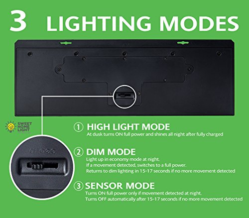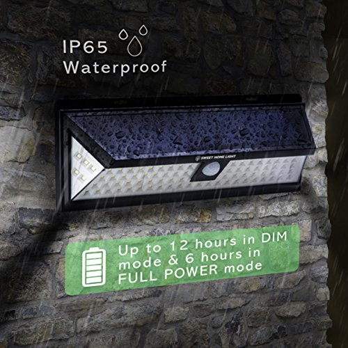 HOME SECURITY WITHOUT THE HASSLE SweetHomeLight’s outdoor solar led lights have 3 intelligent motion activated light switch modes. Increased visibility motion detector light with huge sensing range and angle - up to 33 feet and 120 degrees