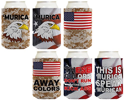 Beer Coolie Patriotic Gift Bundle Murica Camo Eagle 6 Pack Can Coolie Drink Coolers Coolies Multi